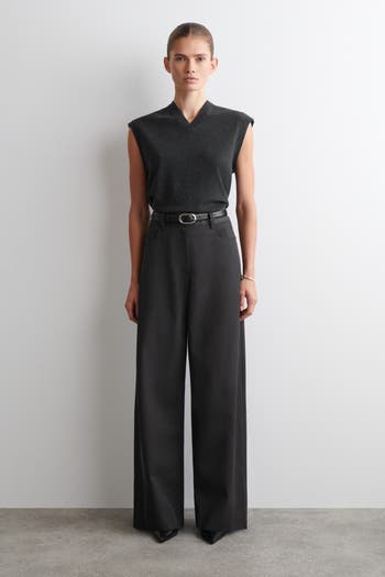 Offered in a chocolate mélange hue, these pants are made from a tactile merino-wool blend and cut in an effortless wide-leg shape that's suited to weekends in the city. They feature an elasticated waistband and a five-pocket design that's inspired by denim.