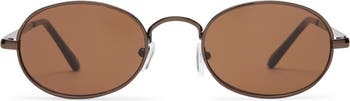 Retro oval frames and logo-marked temples define stylish sunglasses fitted with adjustable nose pads for secure wear.