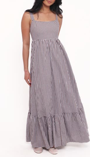 Polished gingham checks define this prairie-inspired dress made from lightweight, breathable cotton and finished with a flowy, floor-grazing skirt.