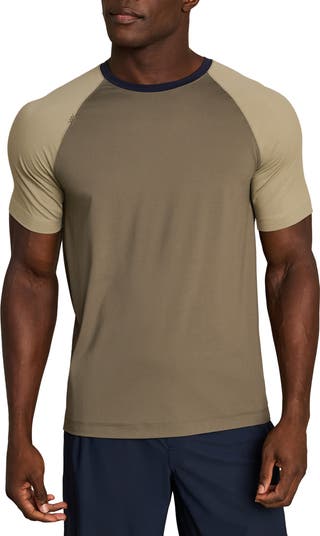 Stretchy, moisture-wicking fabric keeps up with you at any intensity in a T-shirt sporting roomy raglan sleeves, sun protection and essential odor control.