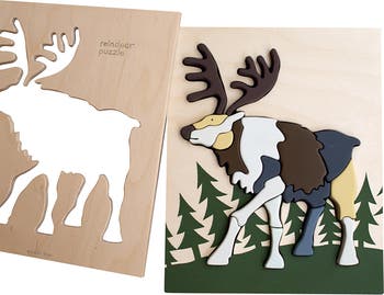 EGUCHI Reindeer 19-Piece Wooden Tray Puzzle, Alternate, color, Multi