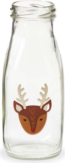 Add a touch of holiday magic to any home with this adorable reindeer milk bottle. Perfect for serving chocolate milk or other beverages, this glass bottle features a charming reindeer design.