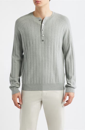 A deep henley placket cinched with gleaming snaps emphasizes the slim vertical ribbing of a sweater knit in part with silky viscose and sized for easy layering. Style it up with polished pieces or down with softer fabrics to bring a distinctive finish to any favorite look.