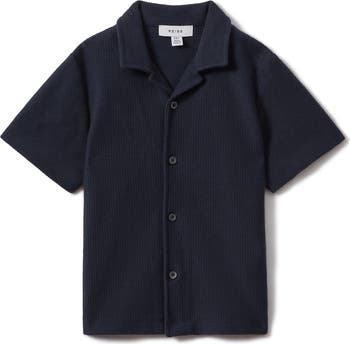 A textured cotton knit looks refined and feels great next to your child's skin in a button-up shirt that goes with everything.