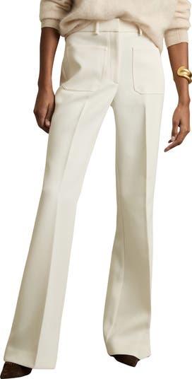 Smooth twill gives a modern vibe to these elegant pants with subtly flared legs and handy pockets.