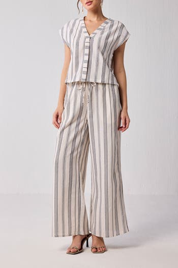 These are your go-to wide-leg pants for everyday wear and vacation alike. Crafted from 100% organic cotton, they are stylish, soft, breathable, and lightweight all day. A relaxed silhouette, elasticated drawstring waist, and functional pockets keep comfort at the forefront, while the timeless stripes make them effortless to style.