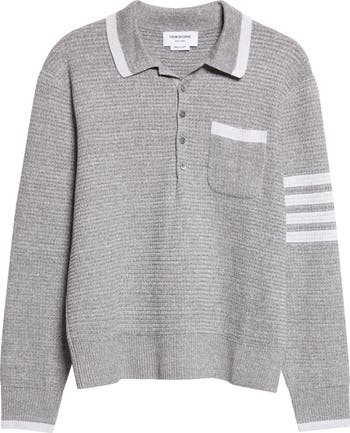 Relaxed 4-Bar Textured Stitch Linen & Cotton Polo Sweater