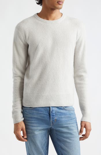 Dropped shoulders accentuate the relaxed look of this wardrobe-staple crewneck knit from a luxe blend of cashmere and silk.