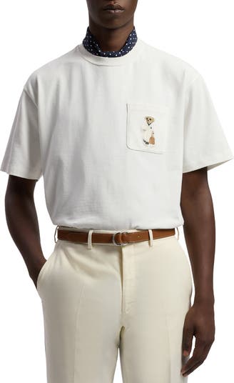An intricately embroidered polo bear marks the pocket of this Italian-made cotton jersey T-shirt fashioned with elastane-enhanced rib trim at the neck for improved stretch retention.