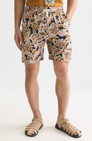 An energetic tropical pattern brightens up the look of these vacation-ready Bermuda shorts in a perfectly relaxed fit.
