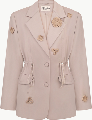Relaxed fit blazer with MFs signature handmade flower details, a fitted waist for a feminine shape, and functional pockets. Comes with matching pants and mini skirt.