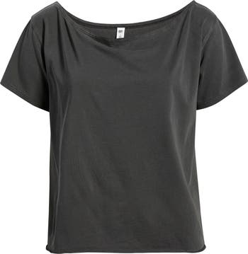 Breathable cotton keeps you feeling comfortable in this relaxed-fit T-shirt featuring a wide boat neck.