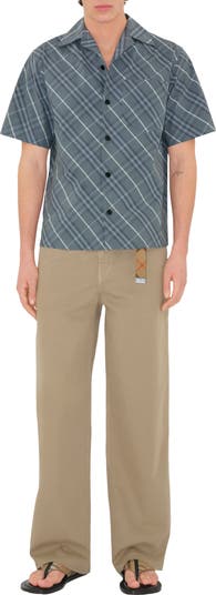 A short-sleeved shirt made from cotton woven in Italy with the Burberry Check. The design is cut to a relaxed fit.||Button closure|Spread collar|Chest patch pocket|Straight hem