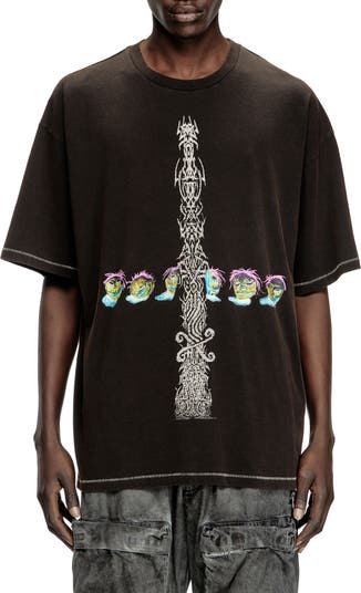A tattoo-inspired design cuts a line through the front of this graphic T-shirt made of cotton.