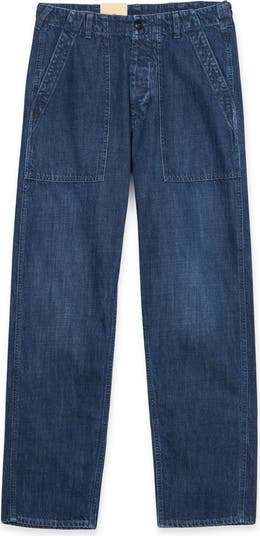 The Fatigue Trousers originated in the US Army as work and training pants. For Fortela , reintroducing these trousers today demonstrates a desire to preserve the memory of vintage garments. The Newfatigue Trousers are reworked each season in materials and details, making them the brand's most iconic garment. Made from 100% cotton denim , the entirely Italian production ensures manufacturing excellence, reflecting in every detail and emphasizing its creation to last and evolve. These trousers feature a relaxed fit with a low crotch, patch pockets on the front with double stitching, and back patch pockets with military-inspired flaps and buttons. Fortela's iconic orange stitching embodies the brand's philosophy of creating garments that last and age with the wearer.