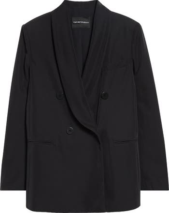 A shawl collar adds a grace note to a double-breasted blazer cut in a roomy, relaxed fit.