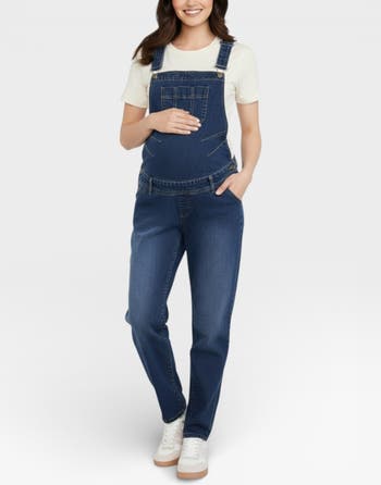 Embrace effortless style and comfort with these denim maternity overalls. Made from a soft cotton-blend with stretch, they feature a square neckline, side buttons, and functional pockets for all-day comfort and ease.