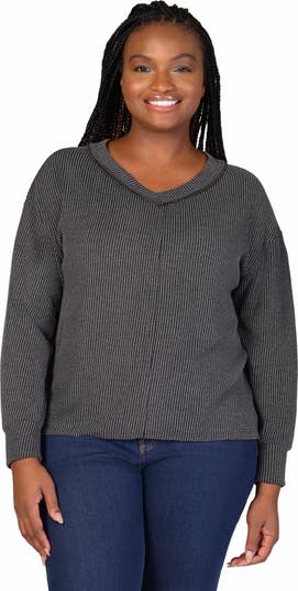 Relaxed Fit Ribbed Knit V-Neck Sweater Top