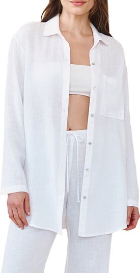 Relaxed Fit Semisheer Cotton Blend Button-Up Tunic