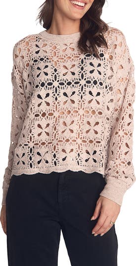A layerable relaxed fit furthers the casual vibe of this wool-and-cashmere sweater featuring a crochet-inspired knit pattern.