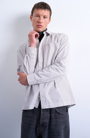 Thinstripes neatly pattern this button-up shirt made from breathable cotton with a roomy fit designed to keep you relaxed on sunny days. Wear it on its own or layered and unbuttoned to change up your look without losing your comfort.