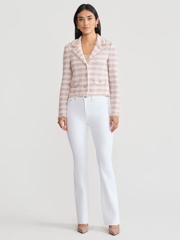 This relaxed plaid fringe trim knit jacket is a lightweight spring layer that blends casual polish with elevated texture. Finished with pearl button detailing and soft fringe accents, it’s perfect for weekend outings, daytime events, and effortless seasonal layering.