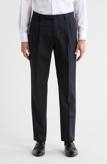 Drapey lyocell and cotton soften these relaxed straight-leg trousers expertly tailored in Italy with single pleats in front and a button-tab closure.