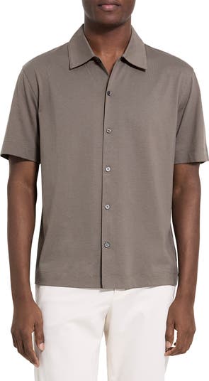 Refine your warm-weather wardrobe with this clean, minimalist button-up cut from a stripe-textured cotton blend.