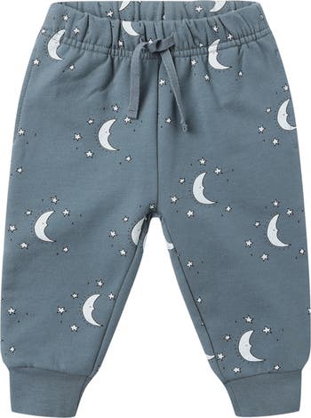 A celestial print covers classic elastic-waist sweatpants with a fuzzy fleece interior that keeps baby ready for cuddles and play.
