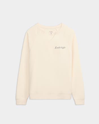 Ease into dreamy shoreline comfort with the Salt Life Women’s Relaxing Realm Pullover. Crafted from soft cotton-poly fleece with an ocean-wash finish, it keeps you warm, relaxed, and effortlessly cozy. Featuring a V-notch neckline and long sleeves, with a back Relaxing Realm graphic that adds breezy, coastal-escape appeal.