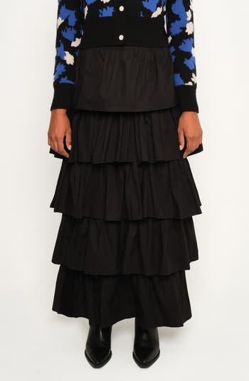 Release Tiered Ruffle Stretch Cotton Maxi Skirt