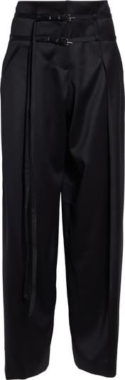 Relics Belted Wool Blend Satin Wide Leg Pants