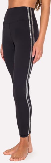 Shimmering stripes race down the sides of high-waisted leggings fashioned from stretch-nylon with cropped legs.