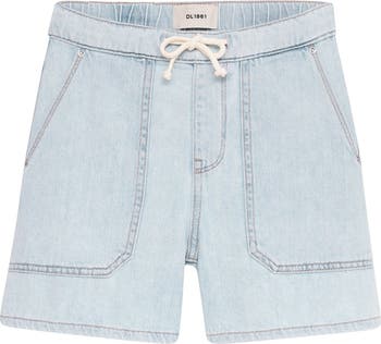 Remie Short is our classic bermuda short fit. A perfect fashion forward piece for daily wear. Poolside Drawcord is a super light indigo wash with a faded look. It features an ecru cotton drawcord, silver hardware, khaki stitching and a clean hem.