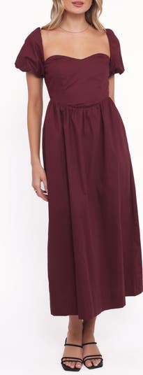 Delightful puff sleeves sweeten the silhouette of this midi made with a fitted bodice and comfortable smocked back.