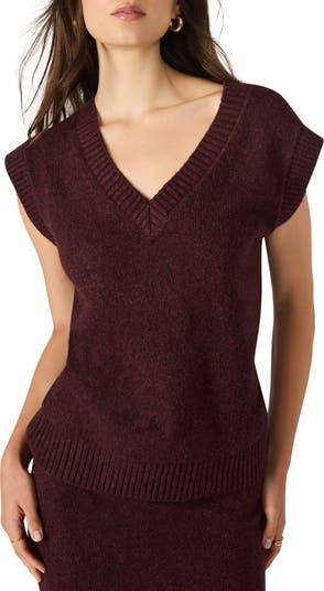 Slight dolman sleeves frame this woolly layer-perfect sweater-vest anchored by ribbed trim.