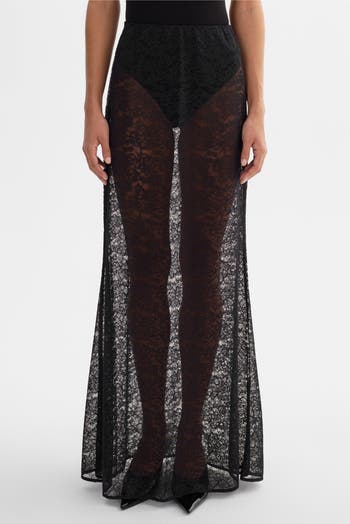 The Ren Lace Maxi Skirt makes an impact with its body-skimming silhouette and sheer stretch lace design. Sitting at the natural waist with an easy pull-on waistband, it falls into a fluid maxi length. Both bold and versatile, it brings a statement touch to evening styling.