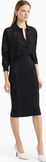 Crafted in a delicate pointelle knit, the REN oversized cropped shirt in red gives effortless elegance.