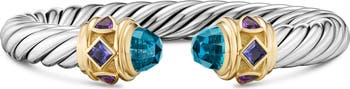 Colorful semiprecious stones subtly elevate this spiraling cuff bracelet designed with a nitinol core for flexible movement.