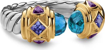 Sculptural form and brilliant jewel tones merge to invoke paintings from the Renaissance era in this twisted-cable ring crafted from sterling silver and 14-karat gold.