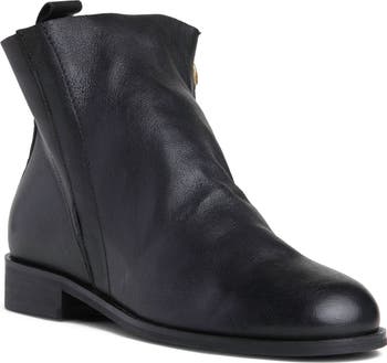 The suppleness of the leather is demonstrated by the slouch of the short shaft on this Italian-made low-heel bootie.