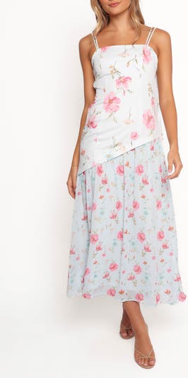 Perfect for garden parties and tea parties alike, this floral maxi dress features strappy ties and a dropped waist with a contrasting, fluttery skirt.
