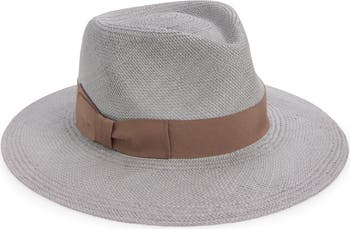 Tonal grossgrain ribbon wraps around the band of this woven straw fedora that adds an air of sophistication to your look.