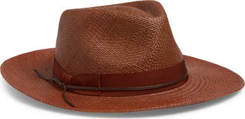 Tonal grossgrain ribbon wraps around the band of this woven straw fedora that adds an air of sophistication to your look.