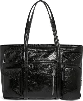 Don't leave home without a glossy patent leather tote with plenty of pocket space and an interior sized for your laptop and much more.