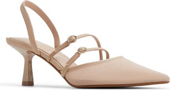A sultry slingback secures your foot in a cushy pointy-toe pump topped with mesh and a multitude of buckled straps.
