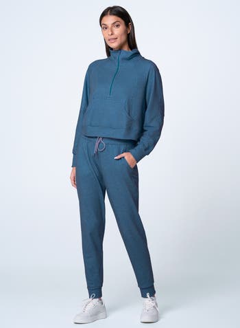 On the go or on the court youíll look your best in our French Terry heather throw over. Featuring a subtle shimmer that adds just the right amount of shine to your day. This 1/4 zip long sleeve perfectly balances fashion and function, ensuring you look stylish while keeping cozy during those post-match moments.