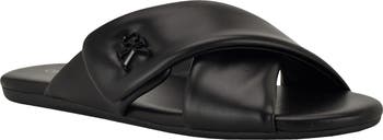 Tonal logo hardware shines atop the crisscrossing straps of a slide sandal that's a sophisticated go-to style.