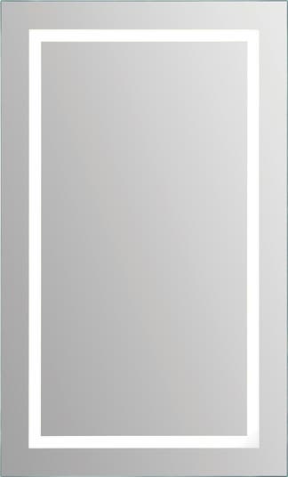 An LED border updates a minimalist mirror that illuminates and elevates any space.