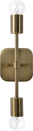 Vintage-inspired style meets luxe appeal in this stylish wall sconce featuring an antiqued brass finish and incandescent-style bulbs.